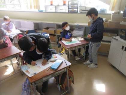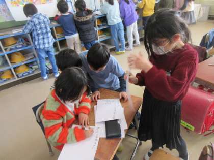 保育園の年長の子どもたちが学校に来て、1年生と交流をします。心を込めて準備をしています。
