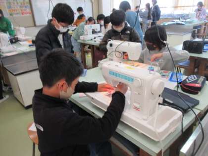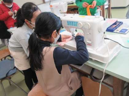 ミシンに挑戦。実技の力をつけることは大切な学習です。