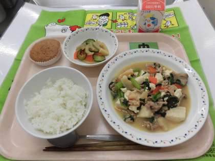 【献立】ごはん・豆腐のうま煮・紅茶ケーキ・牛乳