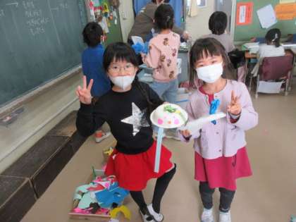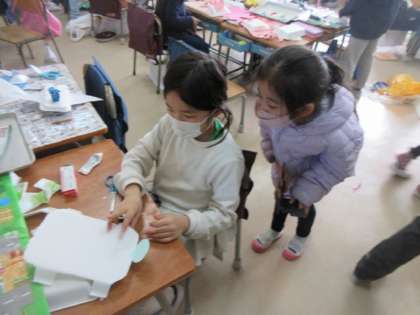 トレイを使って、遊ぶおもちゃを工夫して作っていました。子どもたちの発想は豊かです。