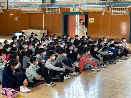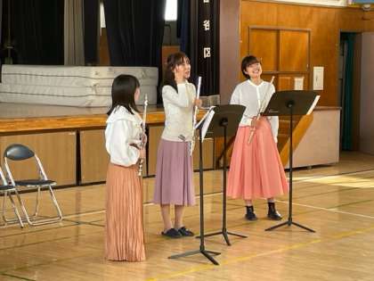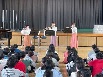 世田谷区出身でフルート奏者として活躍されている方が、6年生のためにコンサートを開いてくださいました。フルートの澄んだ音に、子どもたちは聴き入っていました。