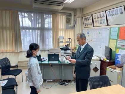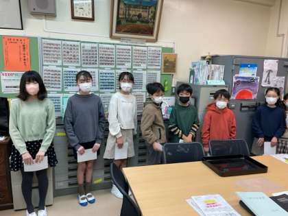 続いては、版画と読書感想文のコンクールに出品した児童の表彰でした。皆さんの写真が撮りきれなくて、ごめんなさい!
