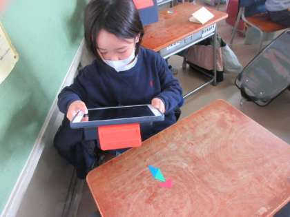 3つの三角形で形づくりをしていました。写真で撮って保存しているので作った形がどんどんタブレット上にたまっていき、あとで振り返りもできます。