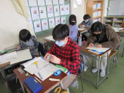 展開図を描き、実際に円柱を作る学習。四角柱より難易度が高いですが、立体を理解するために大切な学習です。