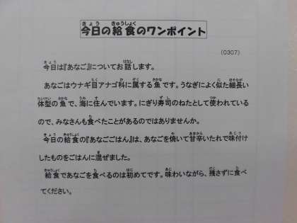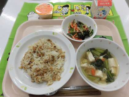 【献立】あなごごはん・和風サラダ・すまし汁・牛乳・みかんシャーベット