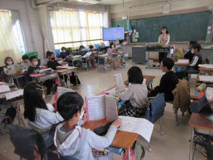 教室から歌声が聞こえてきます。講師の先生の伴奏に合わせて歌を歌っています。