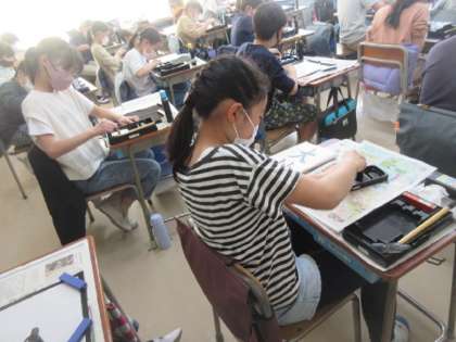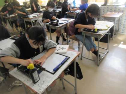 毛筆のまとめの学習として墨をすることに挑戦。貴重な経験です。