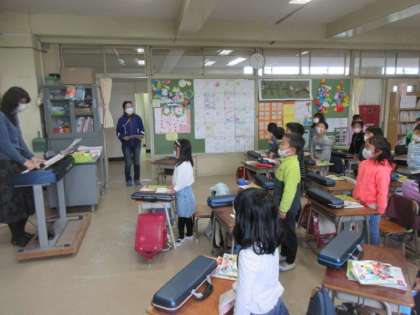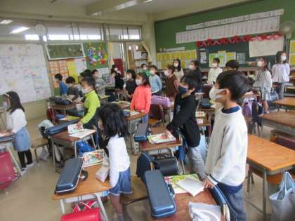 1年生は4月の入学式に2年生として参加します。新1年生の前で歌う校歌の練習をしています。