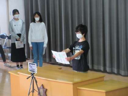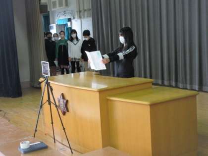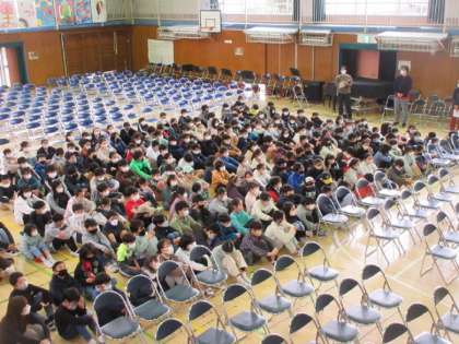 後期の各委員長が活動報告をしました。各教室に配信しましたが、体育館には4,5年生が集まり、深小のバトンが後輩に受け継がれています。