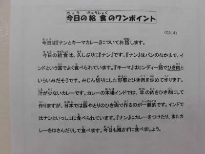 3月14日(火)の給食