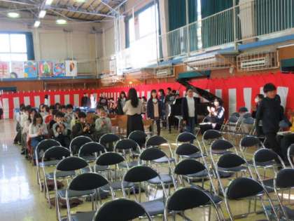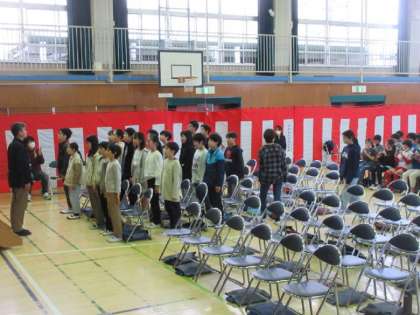 24日の卒業式に向けて5,6年生と教職員で式の予行練習を行いました。