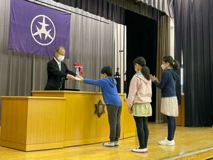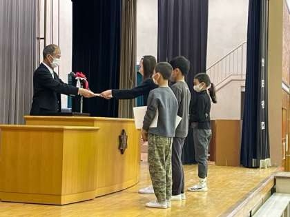 続いて、4、5、6年生の代表に修了証が渡されました。
