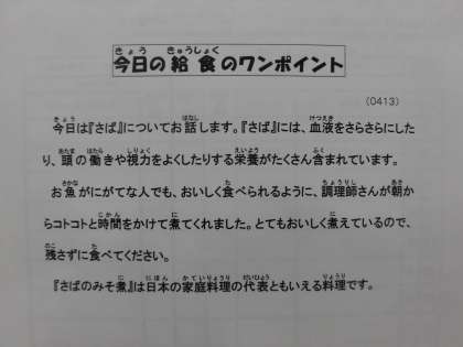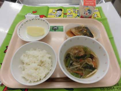【献立】ごはん・さばのみそ煮・沢煮椀・りんご・牛乳