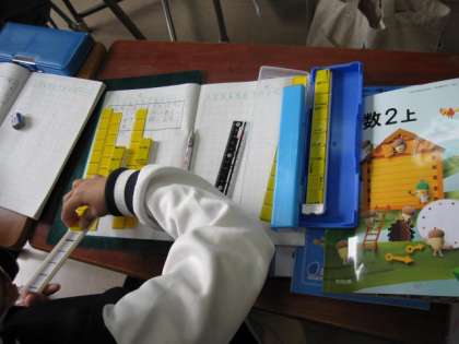 算数ブロックを上手に使いながら考えています。