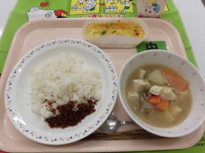 【献立】麦ごはん・かつおふりかけ・千草焼き・豚汁・牛乳