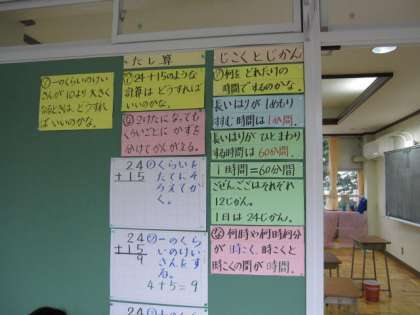 2年生前の廊下を通りかかると、先生が掲示板を飾っていました。