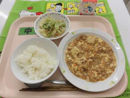 【献立】ごはん・麻婆豆腐・中華サラダ・牛乳