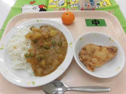 【献立】麦ごはん・カツカレー・冷凍みかん・牛乳