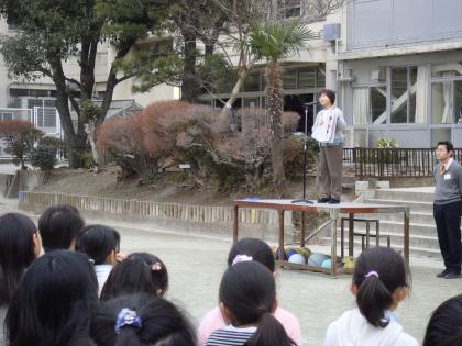 2月9日保健朝会がありました。毎月第2月曜日は、平尾先生が健康についてのお話をしてくれます。今日は、体を動かすことの大切さについてお話ししてくれました。まだまだ寒い日が続きますが、しっかりと体を動かしていってほしいと思います。