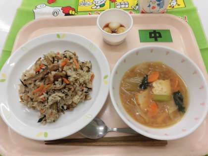 【献立】ひじきごはん・生揚げのみそ汁・みたらし団子・牛乳