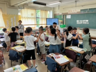 いろいろな曲に乗って、いろいろなお友達と関わります。