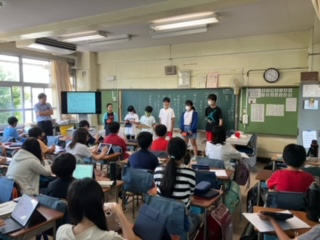 セリフを決めて、練習です。低学年の前で、カッコいい進行を期待してます。