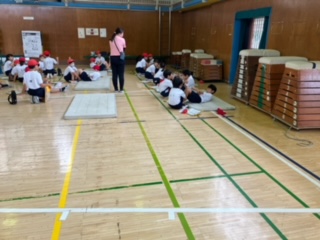 今日は一日かけて、全学年がスポーツテストにとりくります。