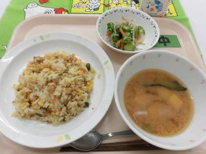 【献立】そぼろごはん・オクラともやしのひたし・みそ汁・牛乳