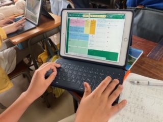 米づくりが始まり、くにができた頃の時代の学習です。タブレットに今日学習した事をまとめています。すばらしい。