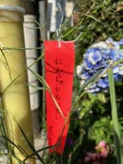 駒沢朝会のご厚意で、通学路に短冊が飾られていました。