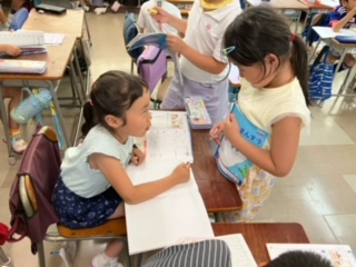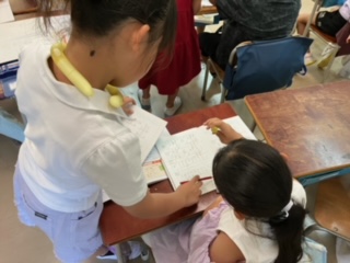 お友達と教え合いながら進めていました。