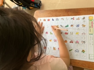ひらがなを一通り全部習って、今日は書取りのテストをしていました。