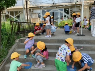 家から持ち寄ったものを使って、シャボン玉で遊んでいました。