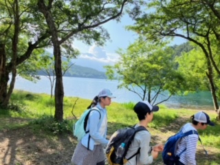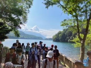 たくさんのトンボが飛びかっています。都会育ちの子ども達は、トンボにタジタジ。