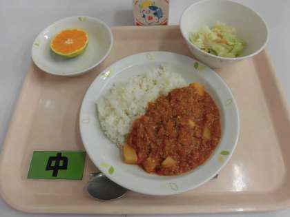 【献立】チリビーンズライス・フレンチサラダ・みかん・牛乳