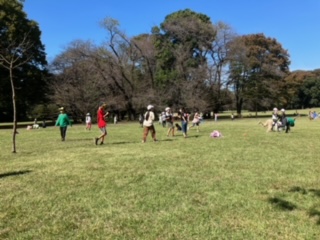 砧公園の拾い原っぱで、子どもたちは思う存分に駆け回り、遊んでいます。たっぷり遊べて、大満足でしょう。