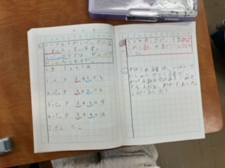 今日はたし算を使って答えを求めました。明日、三の段の九九を勉強します。