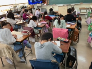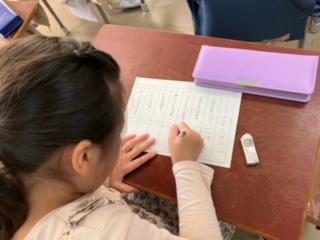 朝一番で漢字テスト。休み中に、しっかり勉強してきたかな?