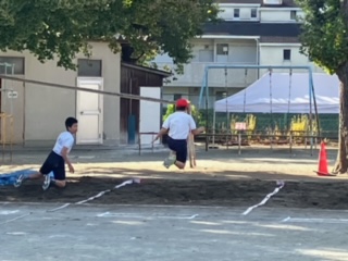 今朝も連合運動会のために朝練習に励む6年生の子たちです。本番は、いよいよ明後日となりました。