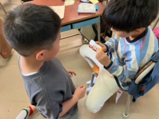 かけ算九九検定の練習をしていました。2人で問題を出し合って、九九の特訓。
