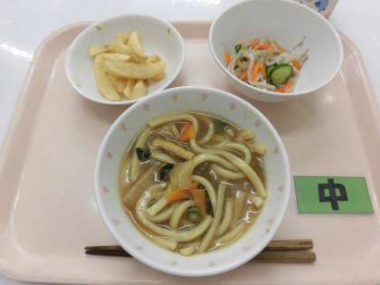 【献立】カレーうどん・野菜の甘酢かけ・フライドポテト・牛乳