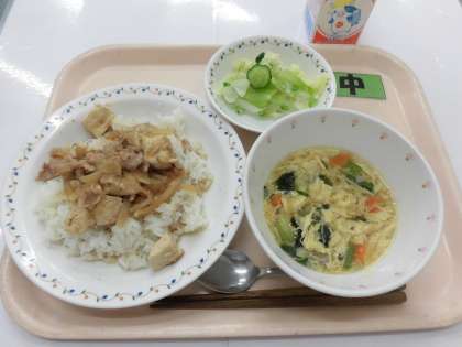 【献立】豚丼・ひとしお野菜・かきたま汁・牛乳