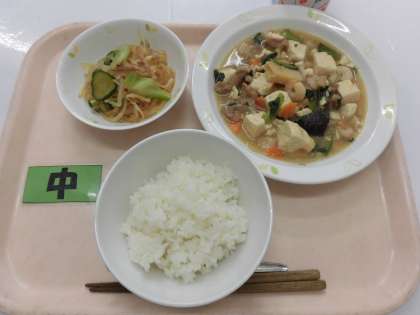 【献立】ごはん・豆腐のうま煮・春雨サラダ・牛乳