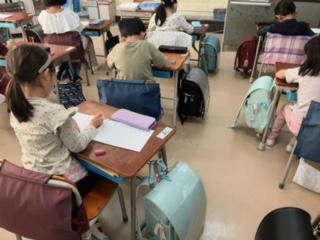 足し算の問題を、自分で作る学習をしていました。一年生も、すっかり集中して学習を進められるようになってます。