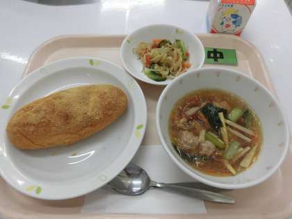 【献立】あげパン・肉団子入り春雨スープ・野菜の中華サラダ・牛乳