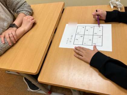 すまいるルームでの個別学習です。一人一人に応じた学習プログラムで進めます。今日はナンプレという数字の学習でした。