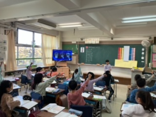 かけ算九九も八の段まで進んでいます。みんなの前で発表していました。