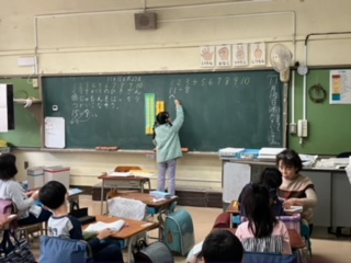 黒板に出て、みんなの前でしっかりと答えをかけていました。頑張っていますね。