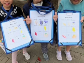 2年生の子達が、校庭で秋探しをしていました。すっかり秋も深まってきました。子どもたちはどんな秋を見つけたのかな?