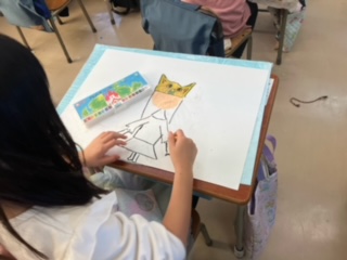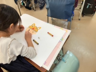 ?学芸会の絵を描いていました。みんな一生懸命に練習した学芸会。終わっちゃったね。楽しかったね。おしゃべりしながら、楽しく描いていました。